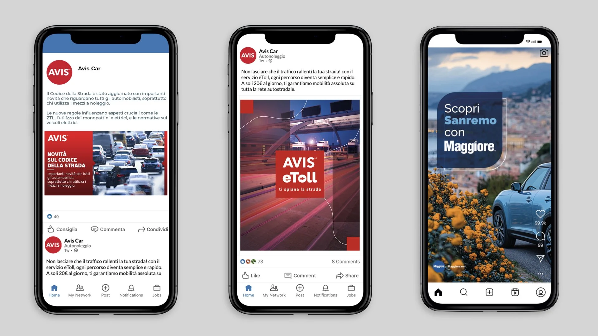 Per AVIS Budget Group, l’agenzia ha progettato e sviluppato una strategia di comunicazione integrata per i brand AVIS, Maggiore, AmicoBlu e Morini Rent, con l’obiettivo di rafforzarne il posizionamento e costruire un ecosistema narrativo coerente nel mondo della mobilità.
